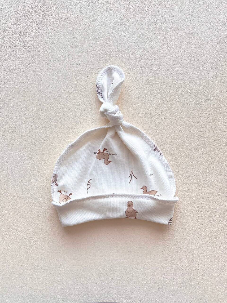 >ШАПОЧКИ ДЛЯ НОВОРОЖДЕННЫХ>9003 Шапочка с узелком SOFI р.36-56 (интерлок) Уточки беж